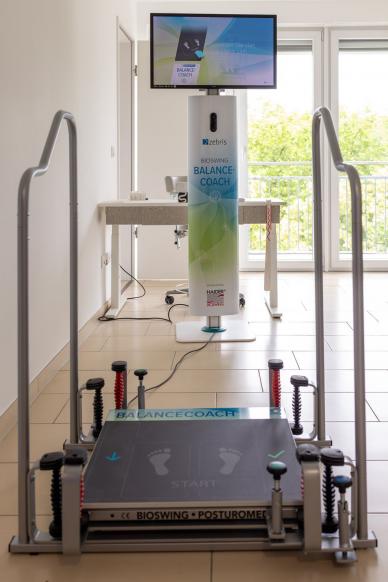 Dieses softwaregesteuerte, intelligente Trainingssystem analysiert und überwacht die Gleichgewichtsfähigkeit der Patientin/des Patienten und stellt es in Echtzeit dar. Ermöglicht wird dies durch spezielle Druckmessplatten mit hochwertigen kapazitiven Sensoren zur exakten Ermittlung der Balance und Bewegungsqualität. Da sich die Patientin/der Patient selbst mittels Kamera auf dem Trainigsbildschirm sieht, erhält sie/er ein direktes visuelles Feedback der Übungsausführung, wodurch der Therapieerfolg deutlich gesteigert werden kann. Neben einer Reduktion des Schwindels kann unser Trainingssystem über eine Stabilisierung der Gelenke und eine Verbesserung der Koordination in jedem Alter zu einer Verletzungs- und Sturzprophylaxe eingesetzt werden.